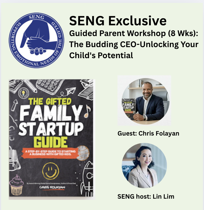 SENG Exclusive – Guided Parent Workshop (8 Wk): The Budding CEO-Unlocking Your Child’s Potential (1/15-3/5/26) * $299 for SENG Members